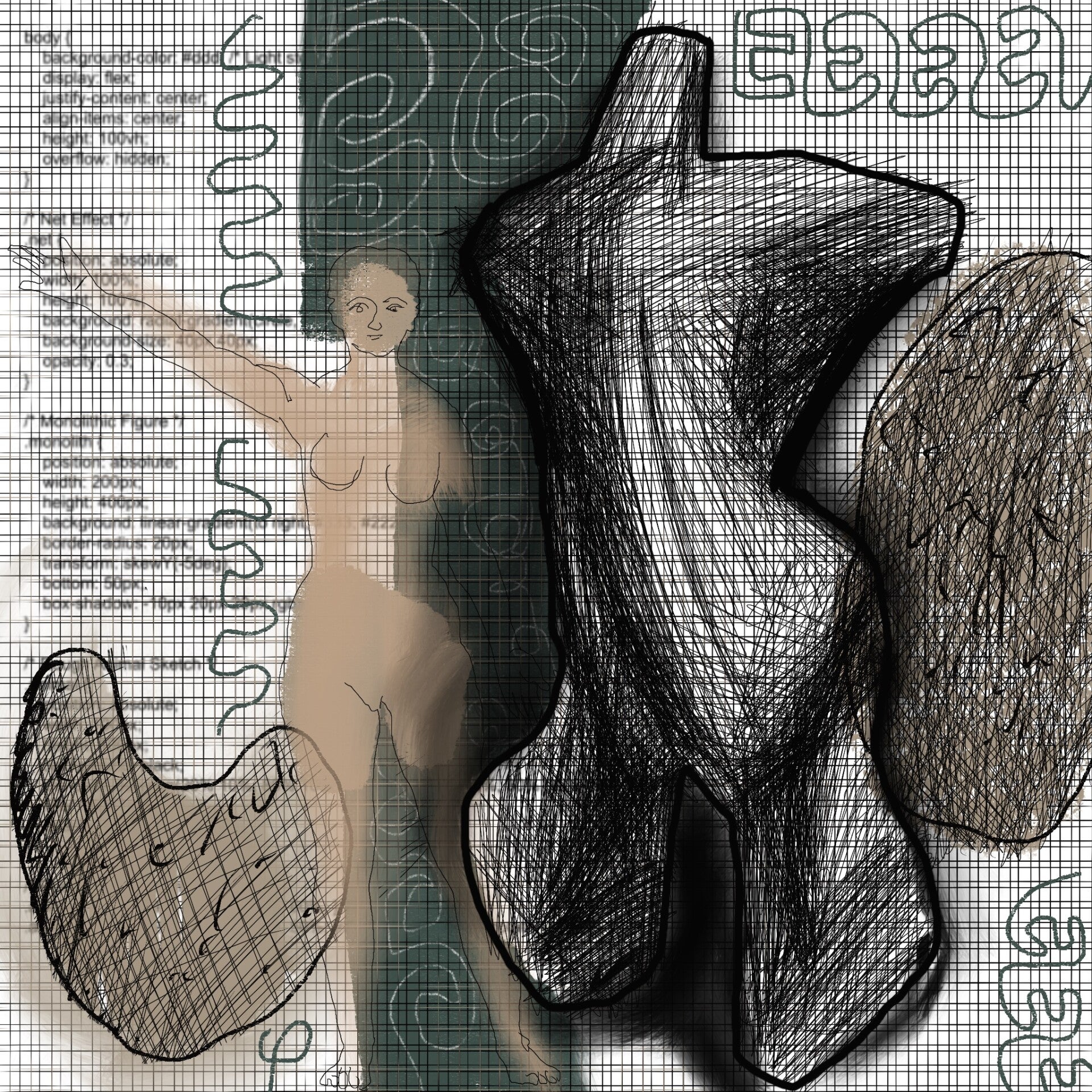 This collection brings together a diverse body of work including fiber art, printmaking and mixed media, and digital pieces. Across these varied forms, a common thread emerges: a dialogue with art history and traditional crafts, filtered through an expressive, contemporary lens.